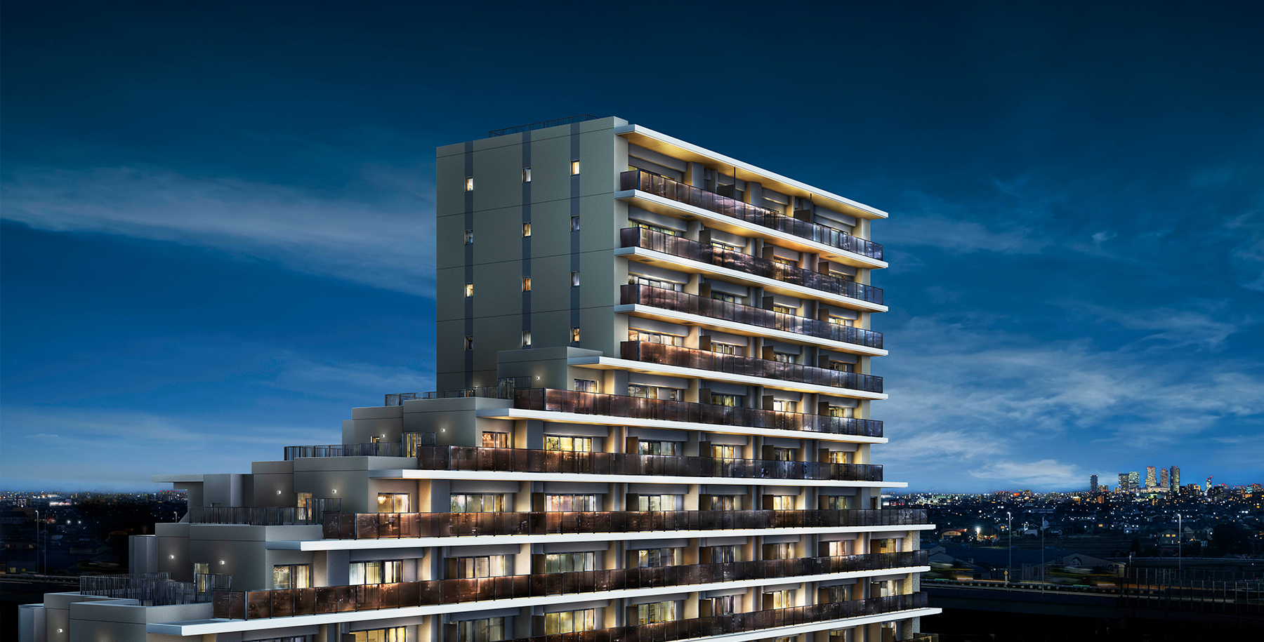 近鉄名古屋線「近鉄弥富」駅徒歩6分。敷地内の全台平面駐車場。高層階限定住戸大型特殊バルコニー