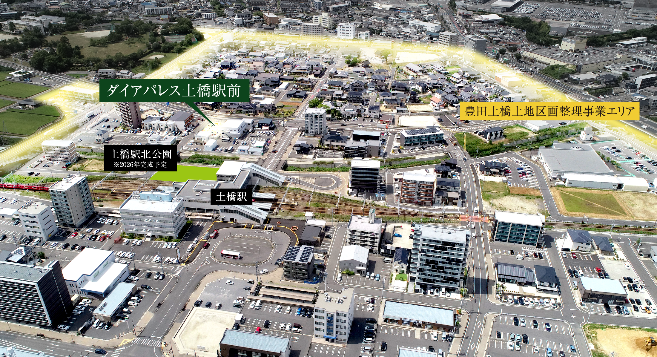 ※眺望写真は2025年6月に現地周辺より撮影したもので、CG加工を施しております。※環境写真は2025年7月に撮影したものです。※航空写真は2025年8月に撮影したものです。※徒歩分数は地図上の概則距離80m=1分として換算したものです。※掲載の電車所要時間は通勤時の所要時間です。(通勤時:平日7:30~9:30)また、乗換えを要する場合は乗換え時間も含んでおります。(Yahoo!路線情報より)※掲載情報は、2025年8月の調査時点のものです。※掲載のエントランスホール完成予想図は、図面を基に描き起こしたもので、施工の都合上、変更となる場合があります。