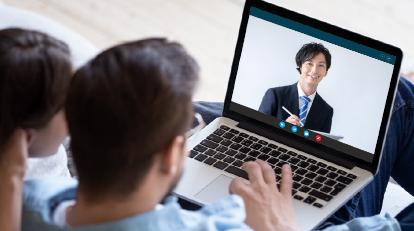 ご自宅にいるお客様と弊社スタッフがオンラインで資料や画面をリアルタイムで共有しながら丁寧にご説明いたします。